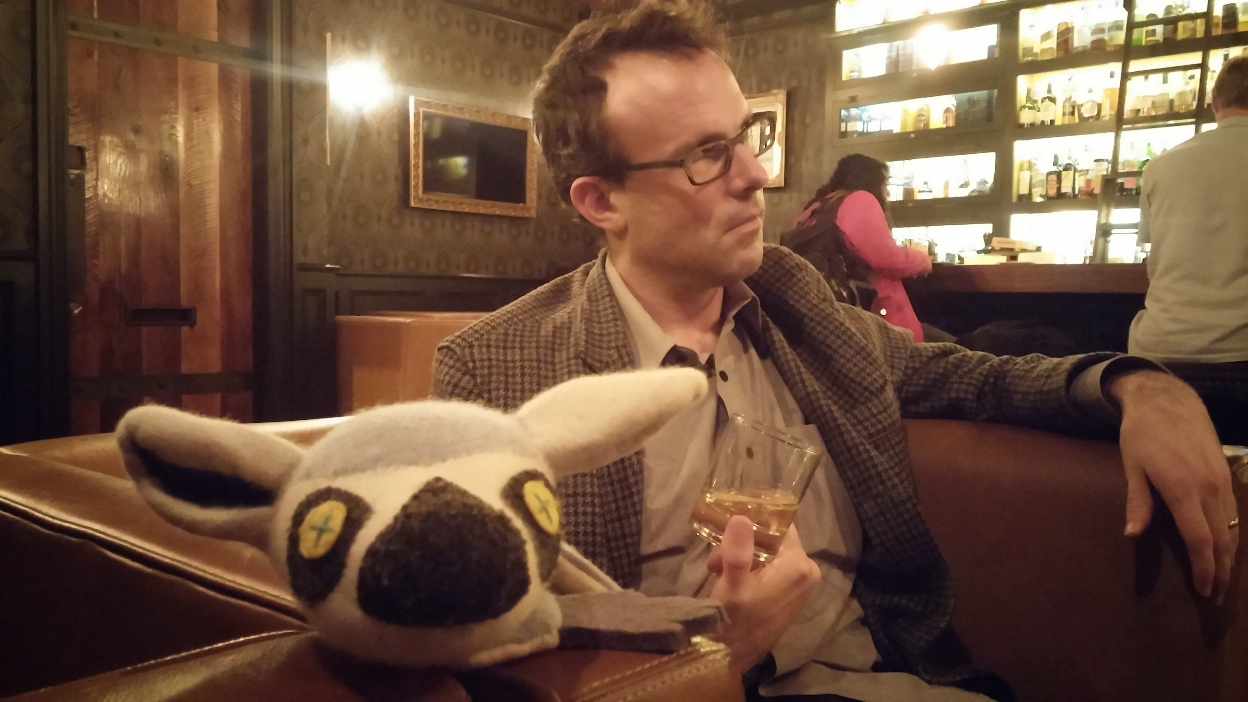 At a fancy bar with a guy in a fancy jacket. And of course, there were fancy drinks!