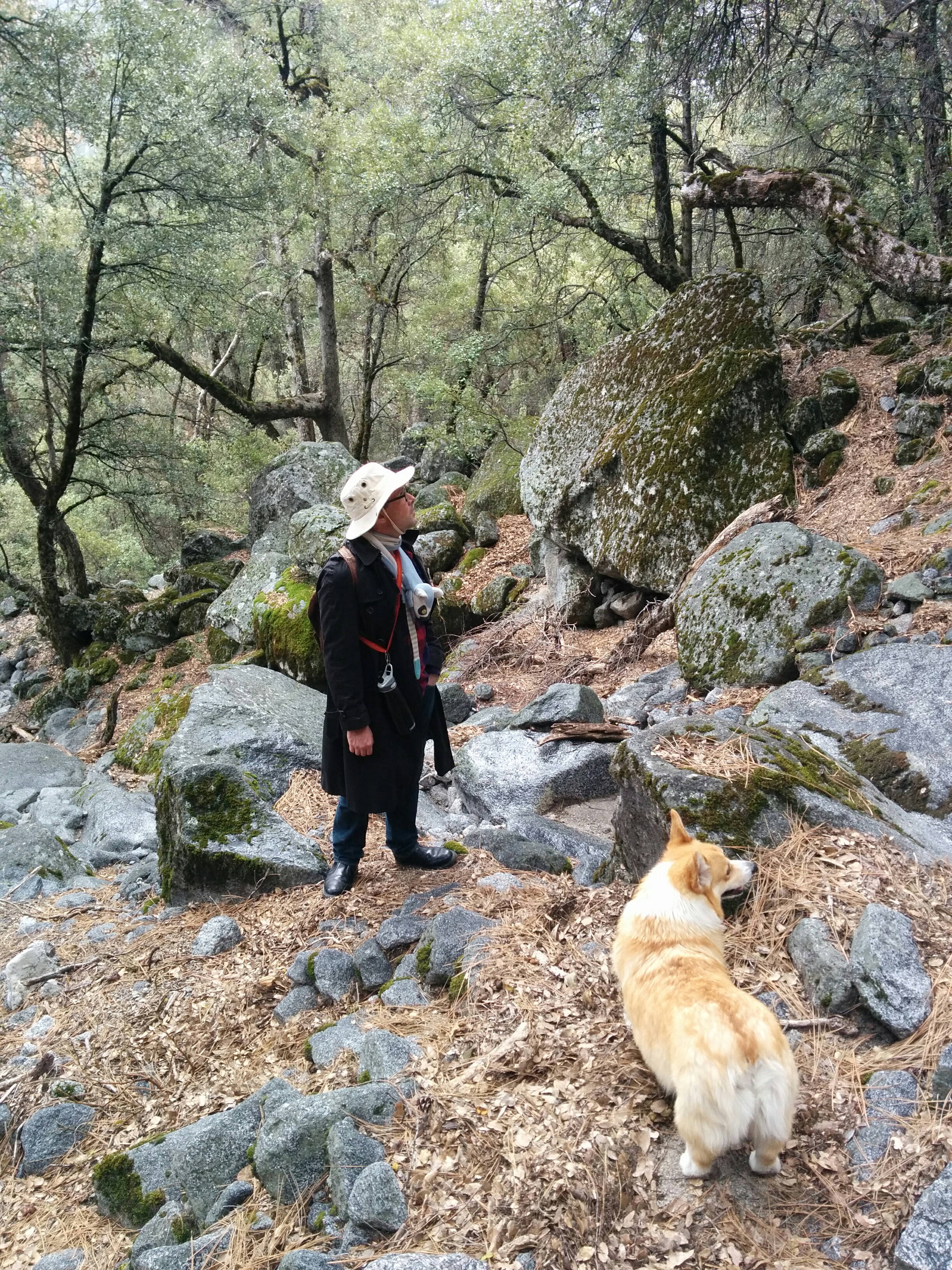 Man, dog, and rocks