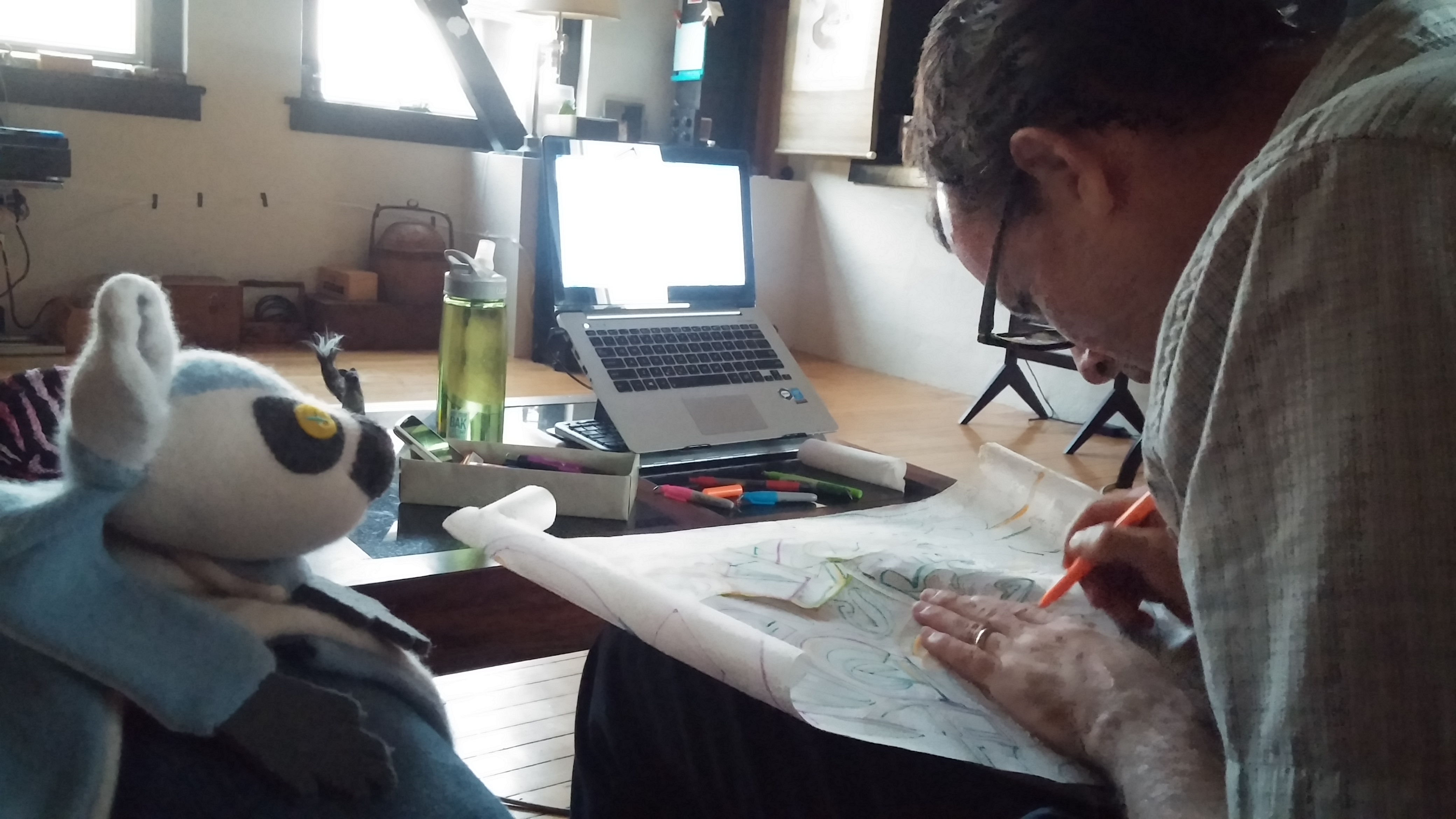 Watching dad make wrapping paper
